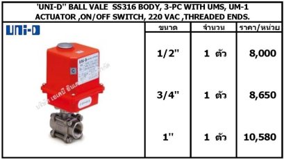 UNI-D" BALL VALVE SS316 BODY, 3-PC WITH UMS, UM-1 **มีสินค้า