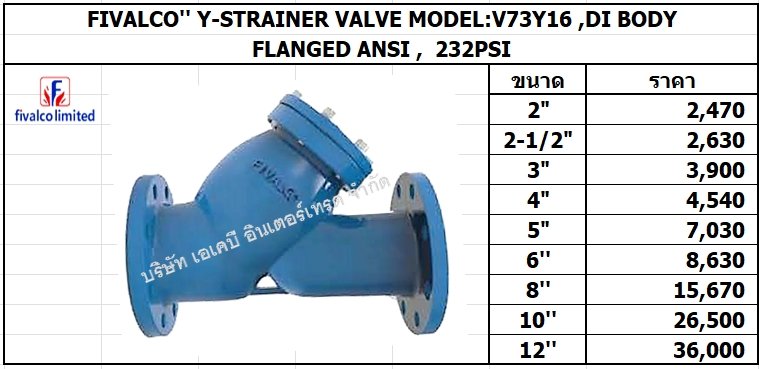 ไฟร์วาโก้ วายสแตนเนอร์ รุ่น V73Y16 ยี่ห้อ FIVALCO กรองสิ่งปนเปื้อน จากตัวกลางที่ไหลอยู่ระบบ เช่น เศษตะกอนต่างๆ เศษและวัสดุที่เข้าไปอยู่ในท่อระหว่างการติดตั้ง และการสะสมของเศษตะกอน/สารที่สามารถเกิดขึ้นได้จากระบบประปา เพื่อป้องกันความเสียหายของมิเตอร์ และวาล์ว