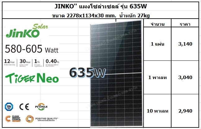 หมวดหมู่ : แผงโซล่าเซลล์บ้าน ,  ยี่ห้อ JINKO ,